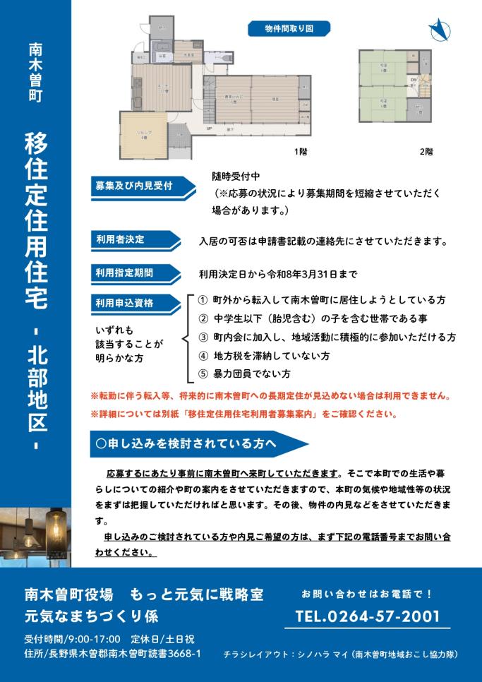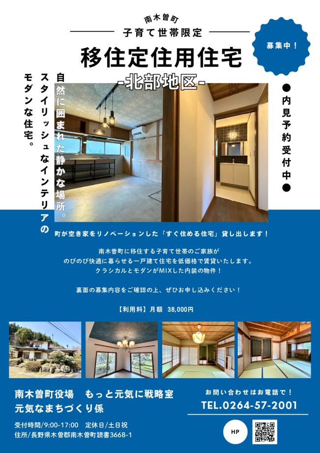 南木曽町移住定住用住宅(北部)の利用者の募集について